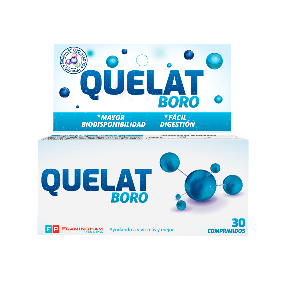 Quelat® Boro es un desarrollo innovador, científico y tecnológico que ha permitido transformar el boro inorgánico en una forma orgánica (quelatada), facilitando su absorción y biodisponibilidad.Quelat® Boro es un mineral esencial para el funcionamiento adecuado del organismo. Aunque se requiere en cantidades muy pequeñas, desempeña varios roles importantes en la salud.